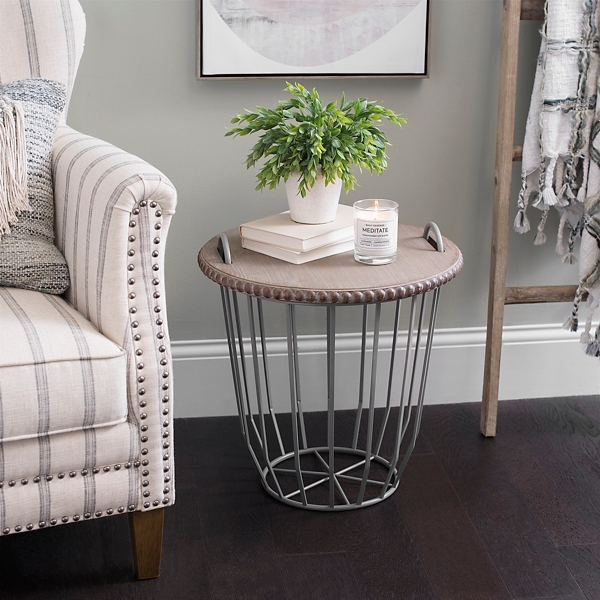 Gray Wire Basket Table With Beaded Wood Top Kirklands