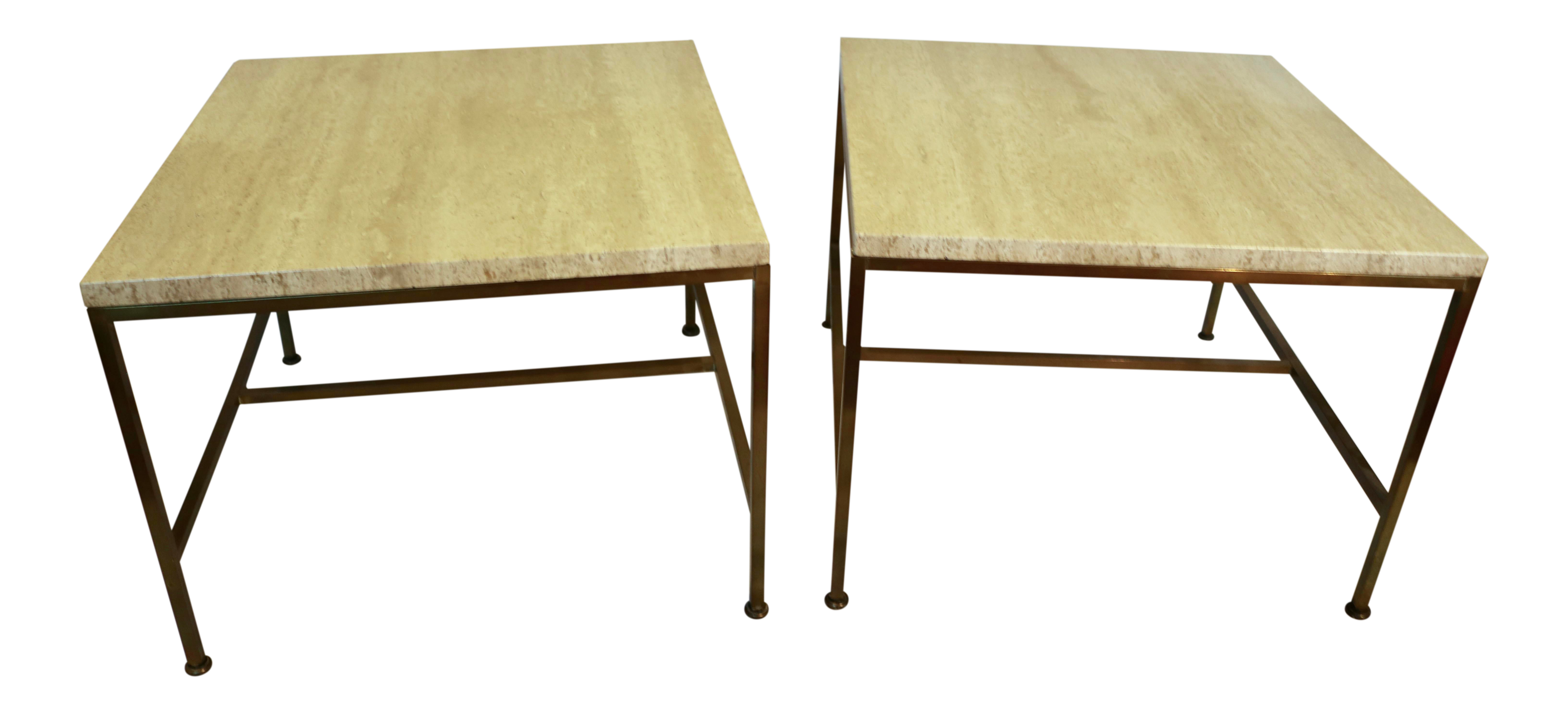 1950s Travertine Marble Top Brass End Tables By Paul Mccobb A