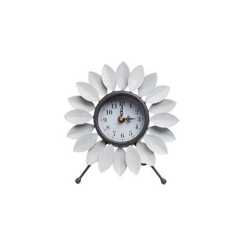 Distressed White Metal Flower Battery Operated Table Clock