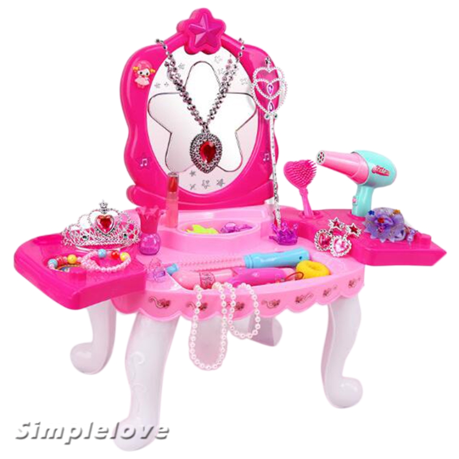 Girls Role Playset Dressing Table W Mirror Rings Hair Clips