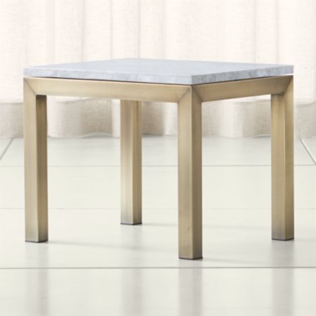 Parsons White Marble Top Brass Base 20x24 End Table Crate And