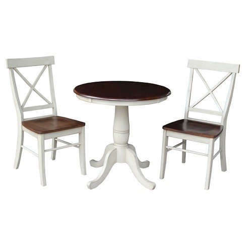3 Piece Dining Set 30 Round Pedestal Dining Table Wood Antiqued