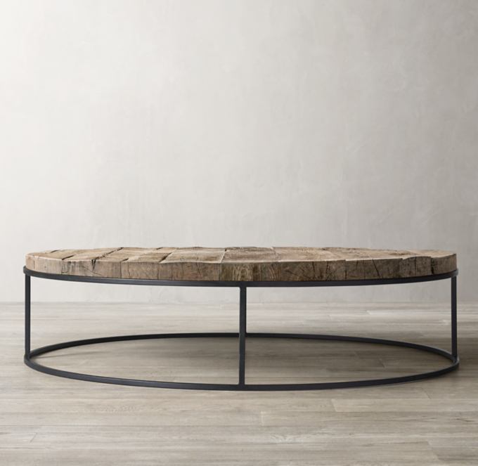 Elgin Round Rustic Wood Black Metal Coffee Table