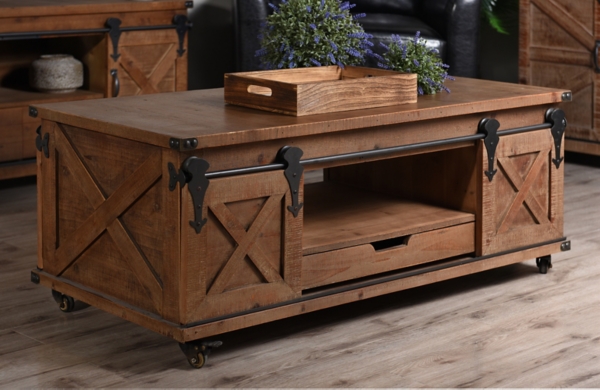 Rustic Fir Wood Rolling Barn Door Coffee Table Kirklands