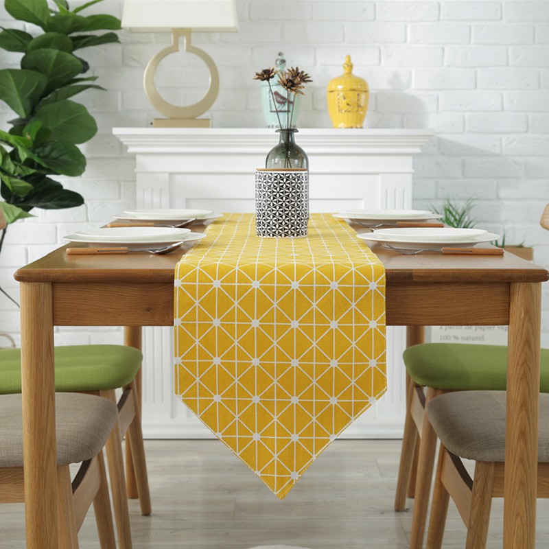 Table Runner Yellow Small Plaid Plushed Fabric Geometric Table Top
